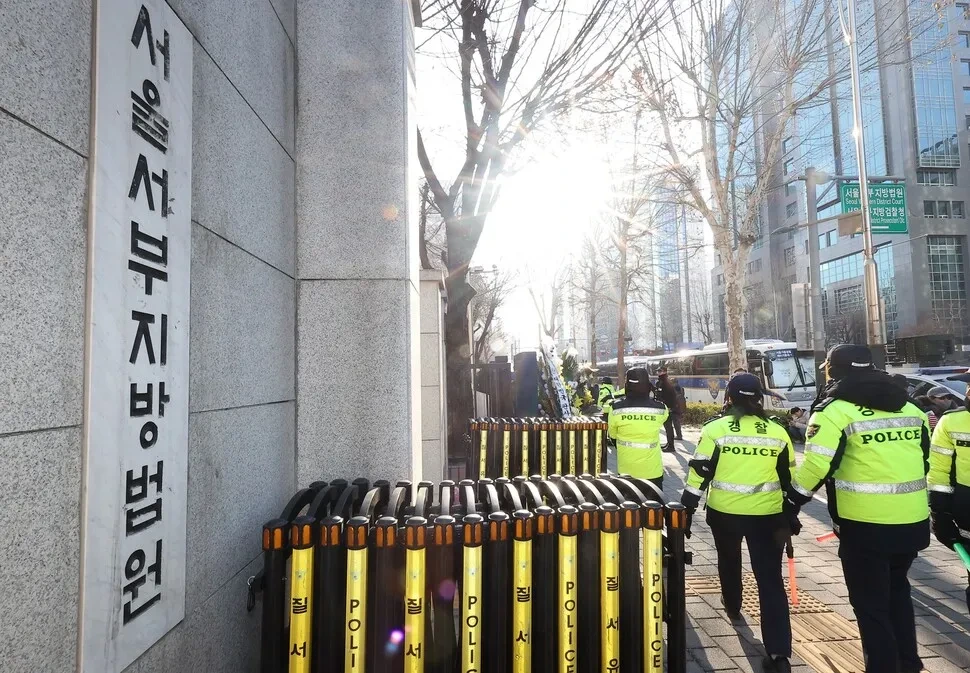 서울 법원 앞에서의 보안 강화 현장입니다.